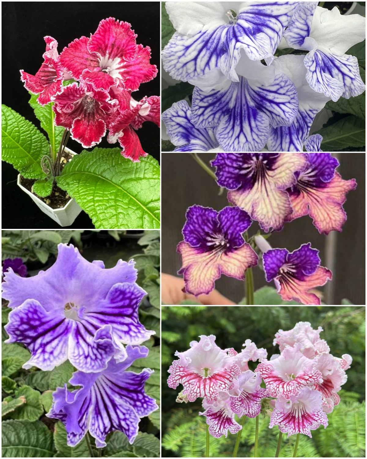 - Fleurs : Solitaires, situées dans les aisselles des feuilles avec des étamines pourpre foncé et de nombreux pistils. Les couleurs varient entre blanc, bleu, violet, rose, rouge, et des combinaisons de couleurs.